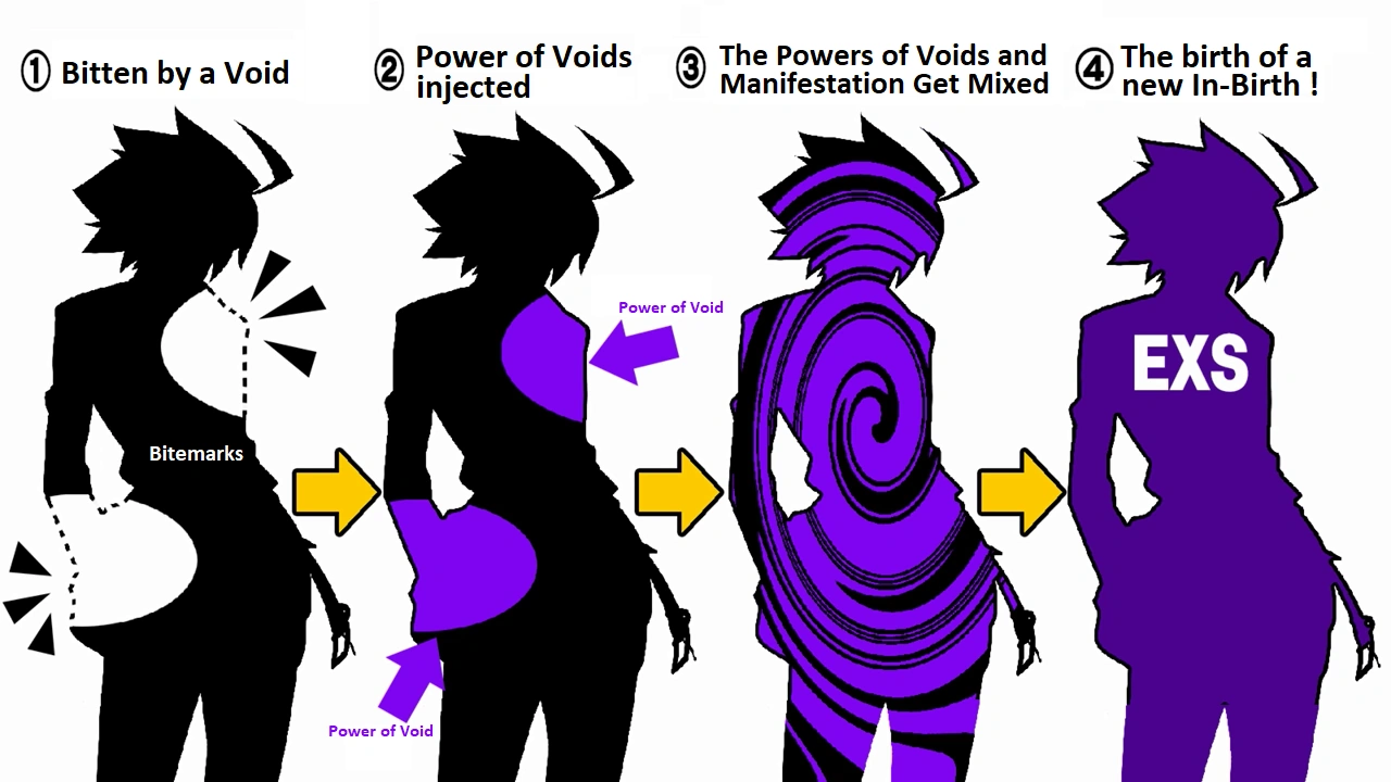 In-Births have access to the Void's common ability, the power of Manifestation (顕現化), which allows an In-Birth to give EXS some sort of unique shape; this is what's usually referred to as an EXS ability. In-Births through EXS also obtain enhanced physical abilities, which may be in order for their bodies to handle their given powers.