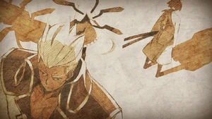 It pained Kuon to see his opponent in this kind of state, but there was little he could do. However, a mysterious, angelic being who had been observing the situation decided to intervene by giving one of her wings to Kuon as a weapon capable of nullifying EXS. With it, Kuon was able to cut through the EXS flowing into Waldstein, saving his life, but leaving him in a partially transformed state.