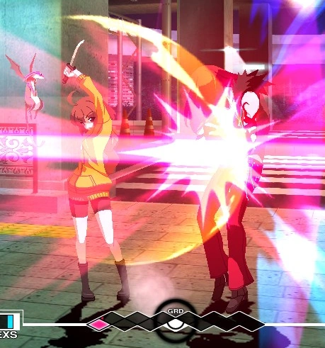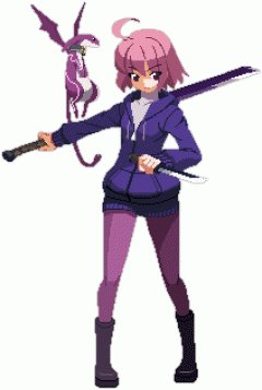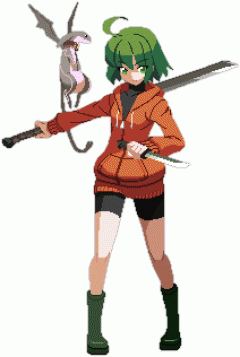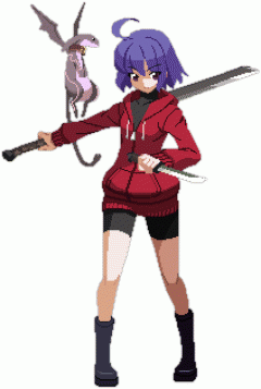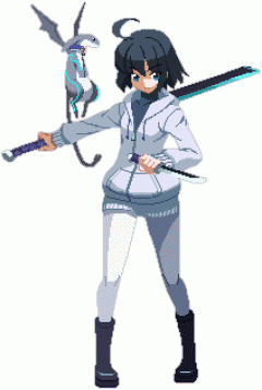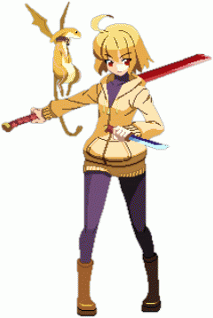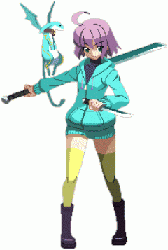 Linne is speedy character has a fast dash and is able to double jump. Using her double jump and Air Fang, Linne can keep the opponent busy on the defensive while she utilizes quick strikes to hammer her opponent into pressure. Like most of the weapon-based characters, she has decent priority normals that can play well in a footsies game somewhat, and tends to have a ton of mashable combo routes that lead to interesting pressure/blockstrings; this in turn, also leads to her ability to form simplistic-yet-long strikes of extended damage.