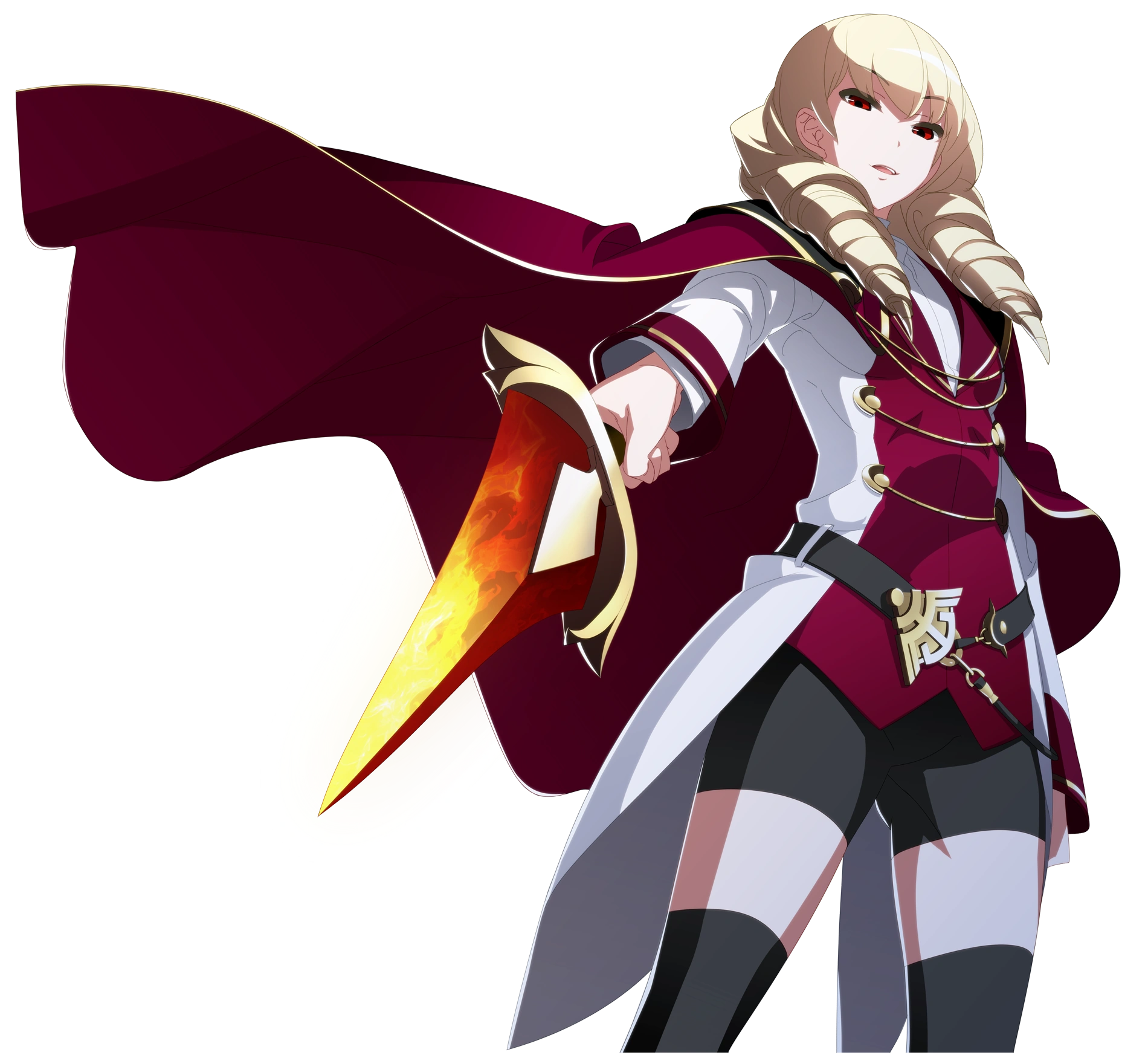 Befitting a Fourth Executor, Wagner is incredibly skilled in combat and is often hailed as one of the most powerful fighters in Licht Kreis. She fights using a combination of her weapons; Fire Brand (ファイアブランド), a golden short sword with an orange blade covered in flame-like patterns, and Ancile (アンキレー), a small, circular red shield embellished with the Licht Kreis insignia and a round, red jewel. Wagner uses her sword and shield in tandem with Flame Tyrant, and is able to endow them with powerful flames to power her strikes. She also possesses a third piece of equipment called the Divine Helmet, Aegis (神兜エーギス), a red and gold mask similar in appearance to a visor, but this piece of equipment is currently in the possession of Murayama and Sakurai.
